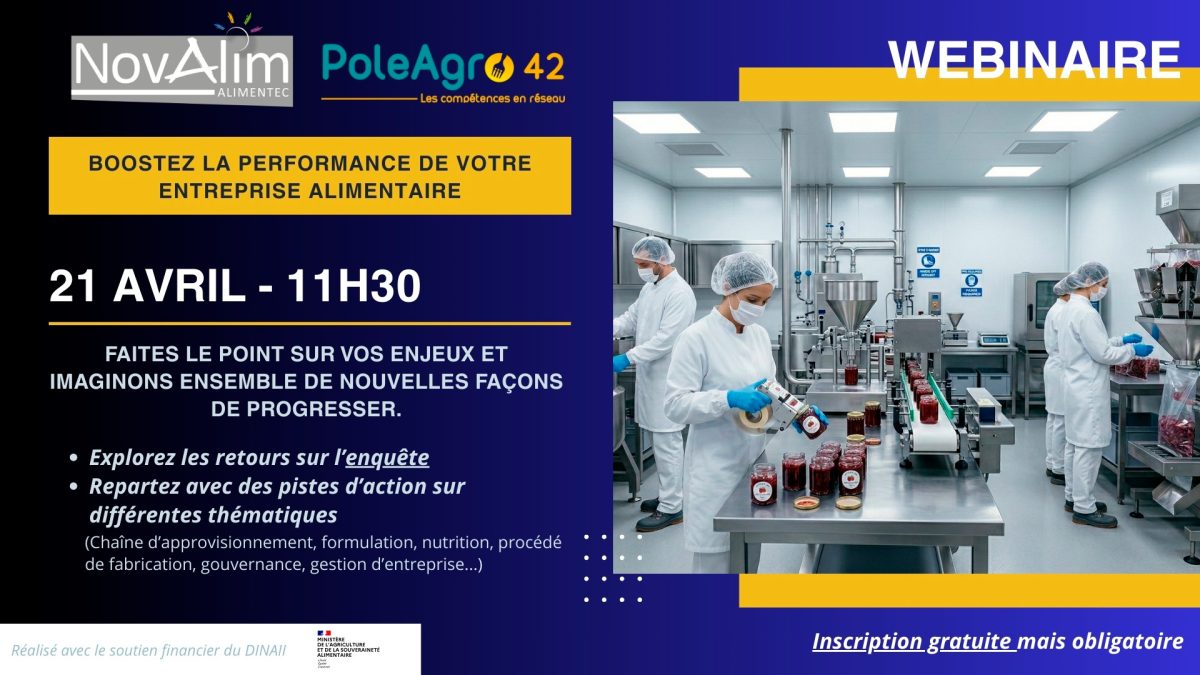 Lors de ce webinaire, nous vous présenterons les principaux résultats de l’enquête réalisée début 2026. Ces retours précieux nous permettent d’identifier les freins rencontrés par les TPE/PME agroalimentaires et de mieux comprendre leurs besoins.
